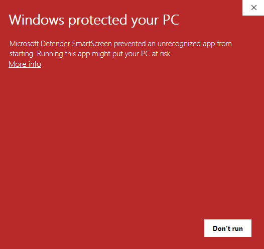 When installing HEAT Bridge you may receive a warning from Windows that looks like the image below.  We are a new team that is currently building reputation with [SmartScreen](https://learn.microsoft.com/en-us/windows/security/operating-system-security/virus-and-threat-protection/microsoft-defender-smartscreen/).  In the meantime if you encounter this warning please click **'More Info'** followed by **'Run Anyway'** to safely install HEAT Bridge.