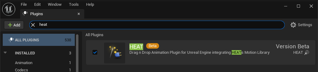 Just like all UE5 plug-ins, you will need to install HEAT in this way every time you start a new unreal project.
